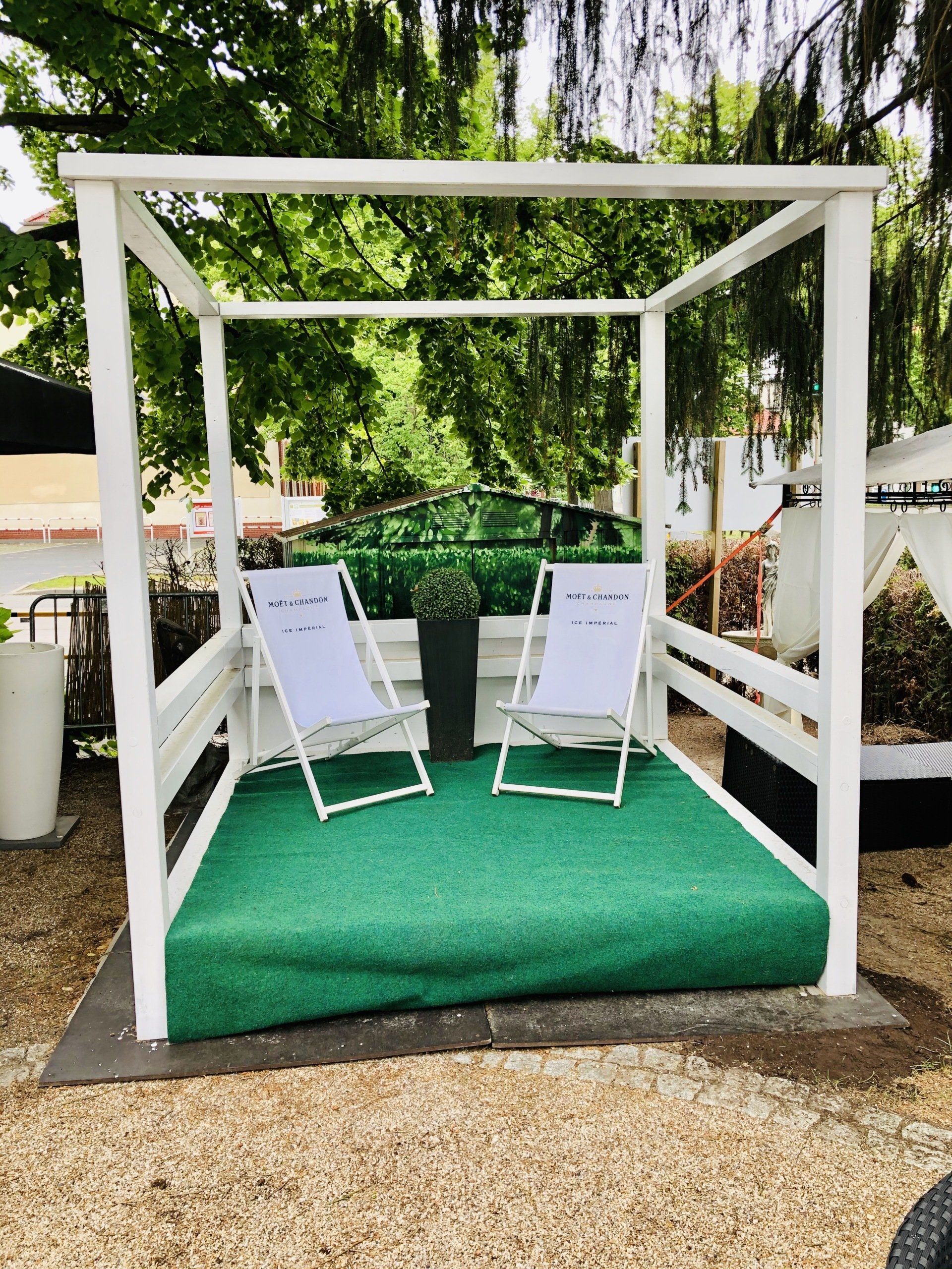 Er bietet vier "Inseln" mit 6-14 Loungeplätzen, eine Bühne und davor befindlich vier Tische mit insgesamt 10 Sitzplätzen, sowie drei Bartresen a` 4-6 Plätzen. Somit stehen im Aussenbereich mind. 56 Sitzplätze zur Verfügung. Zusätzlich besteht noch die Möglichkeit, durch Bistrotische etc. auf ca. 100 Plätze auszubauen.